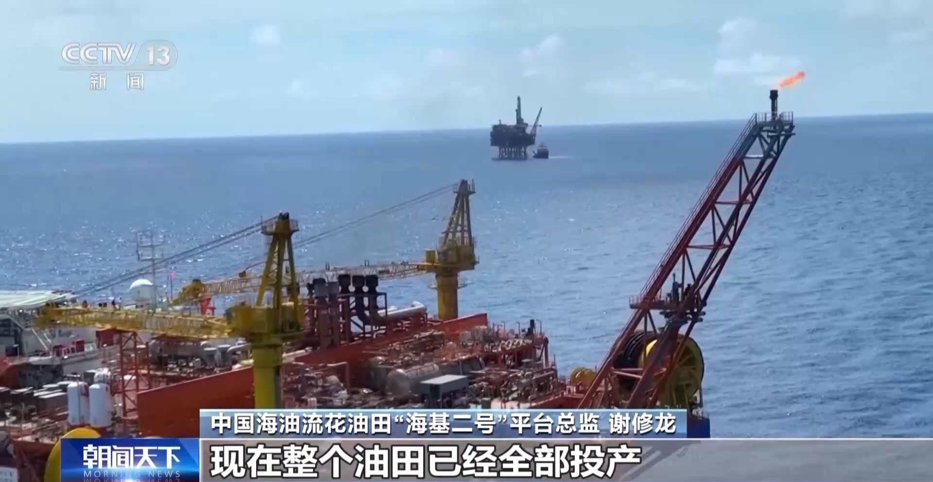 中海油流花油田“海集二号”平台总监谢秀龙:原油在“海集二号”平台初步加工后,被输送至2.5公里外的海上油气处理厂“海葵一号”进行进一步加工和储存。迄今为止,我们已向各地炼油厂交付了总计 25 批原油。现在油田已全面投产,开发成果好于预期,日产量创我油田22年来新高。